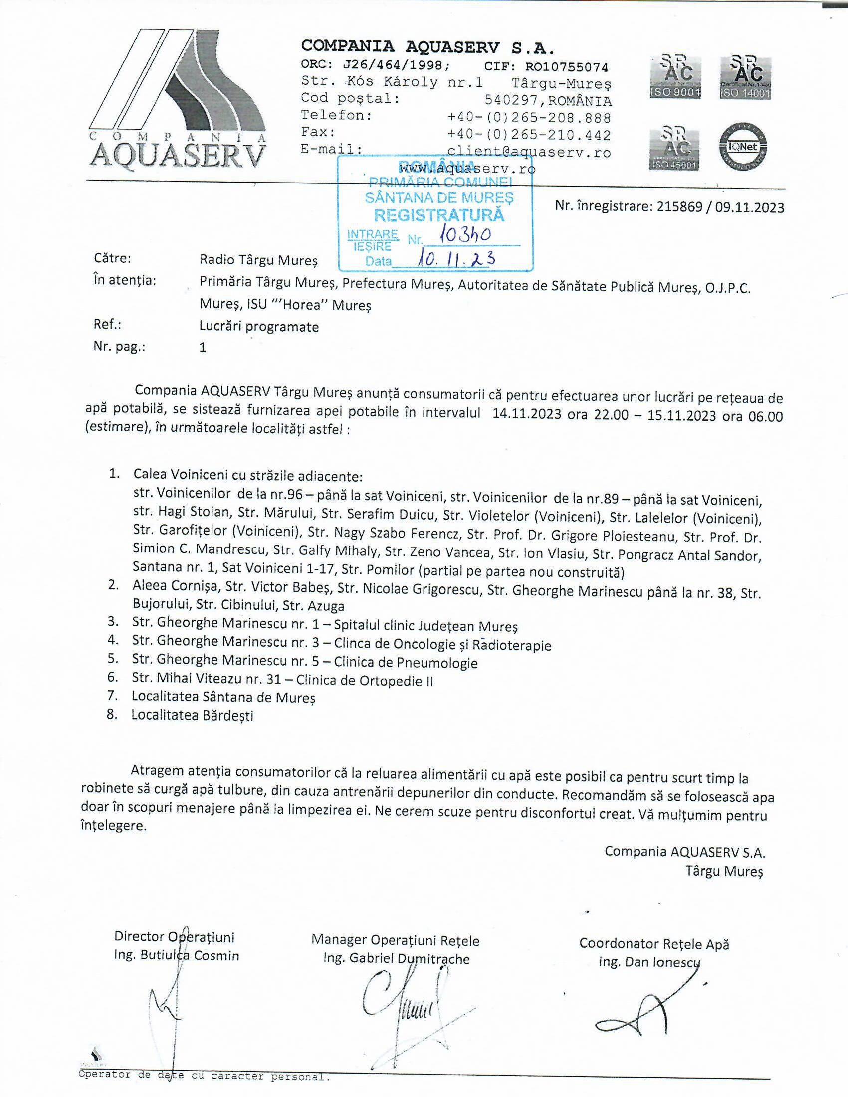 Mulțumim pentru înțelegere!