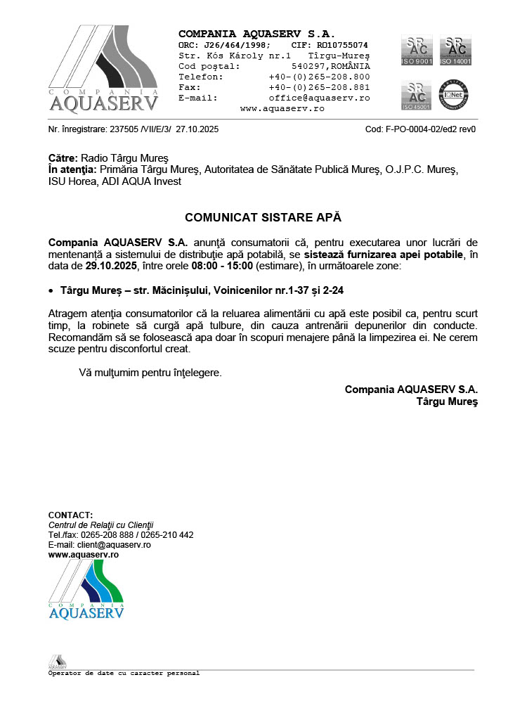 📅 Joi, 13.11.2025 – Se va ridica cartonul și hârtia din Sântana de Mureș, Curteni și Chinari.