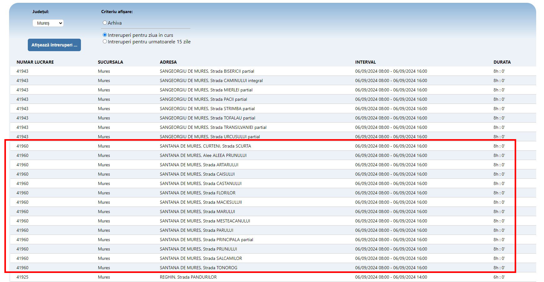 Vă anunțăm că din cauza unei avarii, apa potabilă se întrerupe în Sântana de Mureș, zona blocurilor ANL și pe străzile din jur, în intervalul orar 10:30 – 13:30 (estimare).